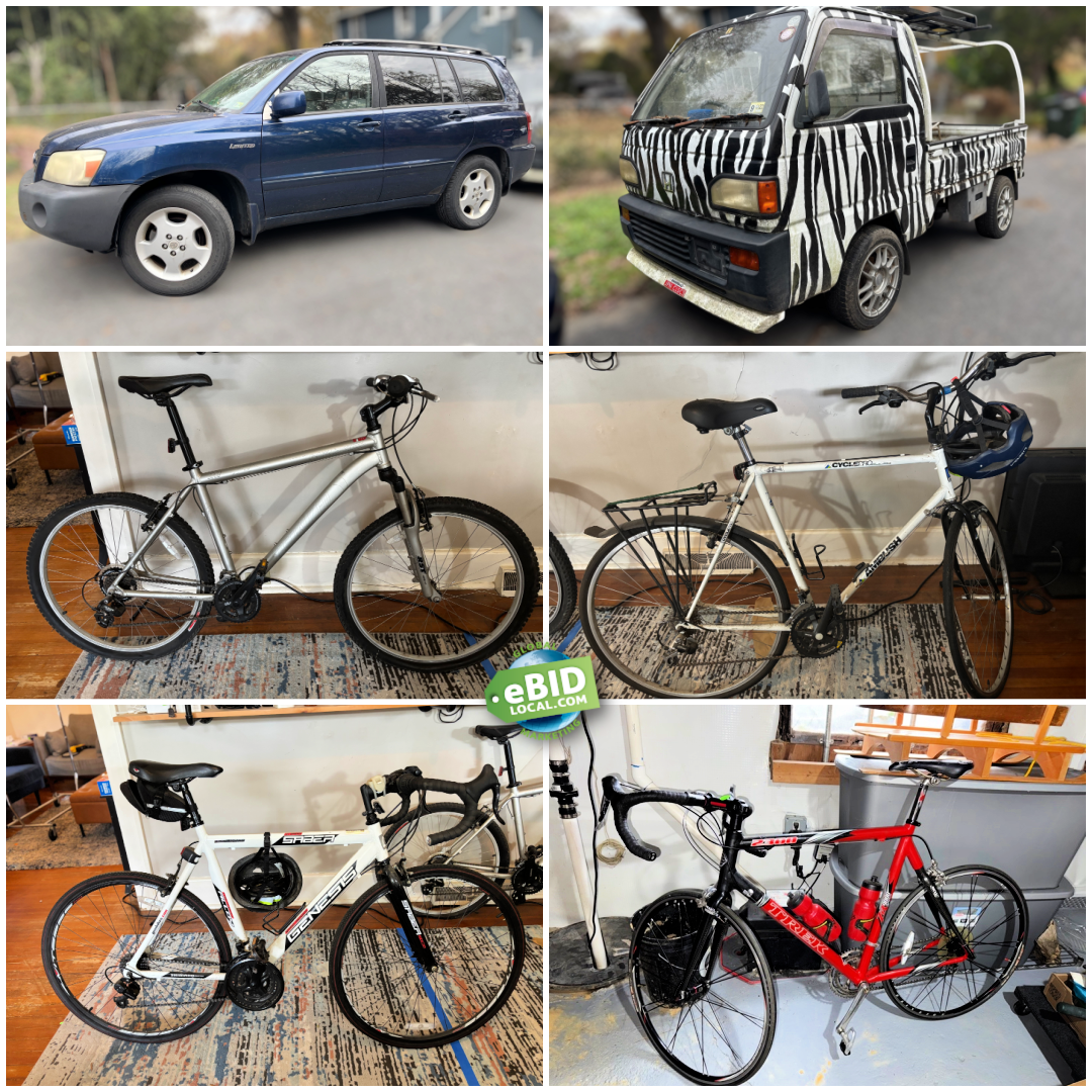 Richmond Area Estate Auction featuring 2005 Toyota Highlander, Japanese Honda ACTY Truck, Arhaus Furniture, Antique White Clad Ice Box, Niceday Elliptical, HaulMaster Drywall Hoist, Bowflex XTL System, WeiderPro Weightlifting Bench, Mainstream Streak Kayak, Genesis Road Series Saber, Specialized Hardrock XC, An Assortment of Harry Potter Collectibles including Books, Legos and Decor. Torrid Plus Size Clothes, Women's Shoes, Costume Jewelry, Cameras, Furniture, Kitchenware, Catering Supplies, Tools, Patio Furniture, Electronics, Home Decor, Small Appliances, Storage Shelves, and MUCH MORE!